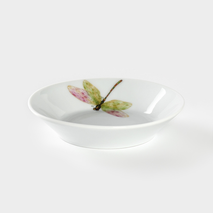 Блюдце фарфоровое «Стрекоза», d=14 см, цвет белый