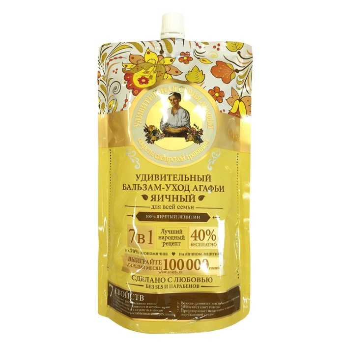 Бальзам для волос яичный "Удивительная серия Агафьи" — это надежный помощник в уходе за волосами, который подходит для всей семьи и делает волосы здоровыми, красивыми и ухоженными.