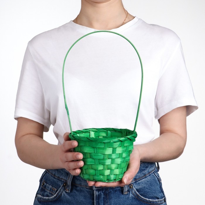 Корзина плетёная, бамбук, зелёная, средняя