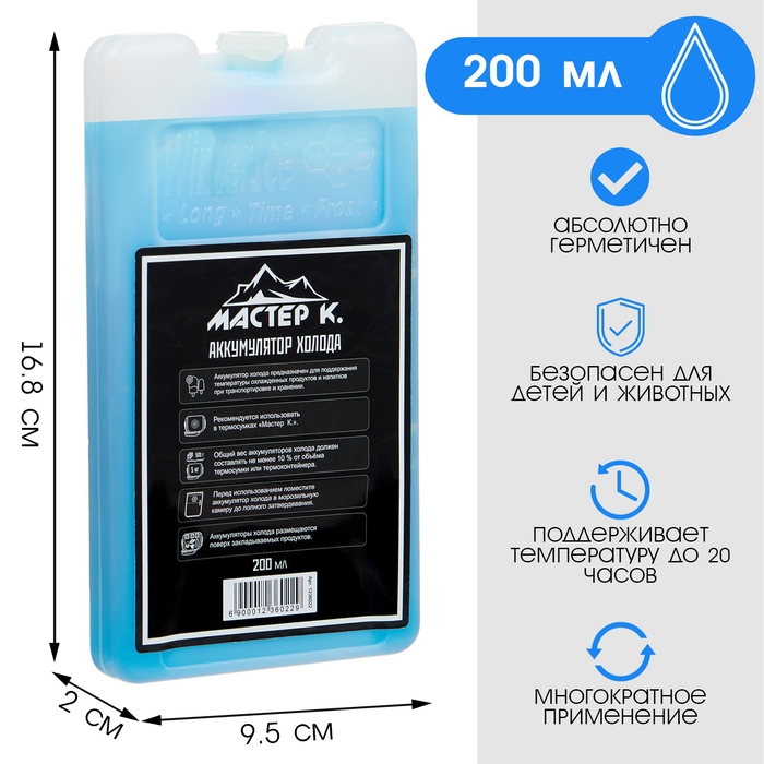 Аккумулятор холода - гелевый хладоэлемент для термосумки "Мастер К.", до 20 ч, 200 мл