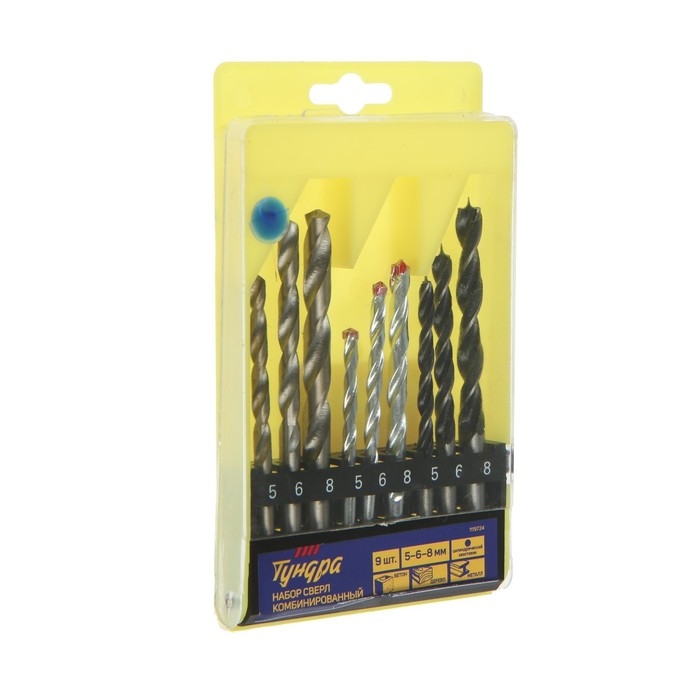 Набор сверл комбинированный ТУНДРА, цилиндрический хвостовик, 5-6-8 мм, 9 шт.