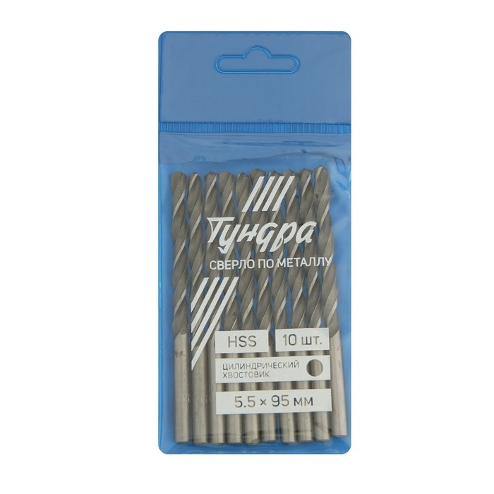 Сверло по металлу ТУНДРА, HSS, цилиндрический хвостовик, 5.5 х 95 мм, 10 шт.