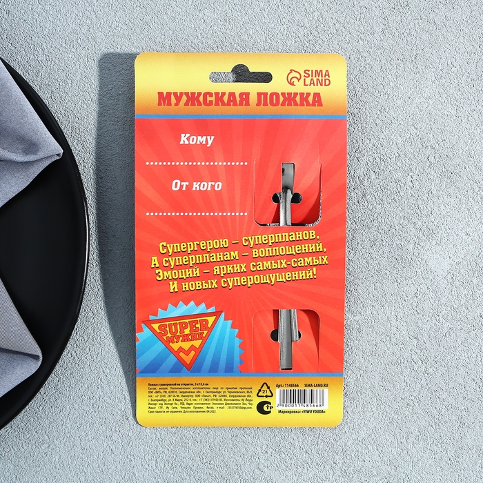 Ложечка преподносится на яркой дизайнерской открытке, на обороте вы найдёте место для подписи, что сделает подарок ещё более личным.