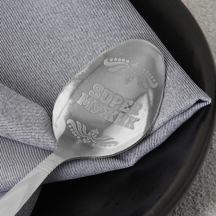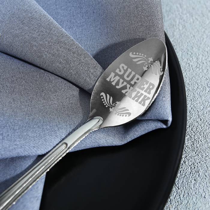 Ложка чайная с гравировкой «Super мужик», на подарочной открытке, 3 х 14 см.