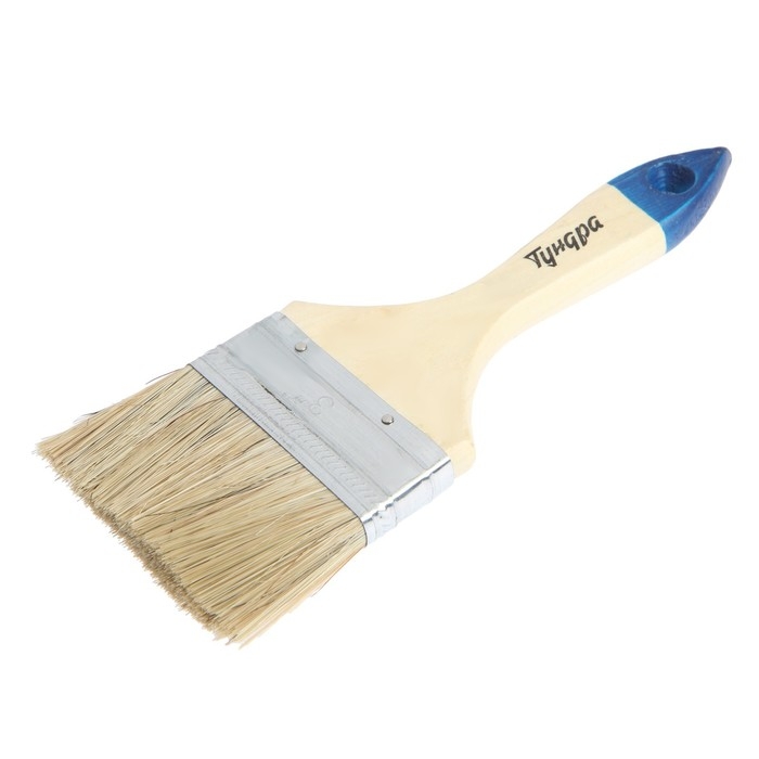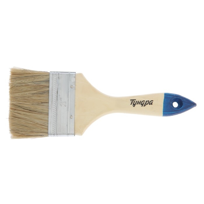 Кисть плоская ТУНДРА, натуральная щетина, деревянная рукоятка, 3", 75 мм