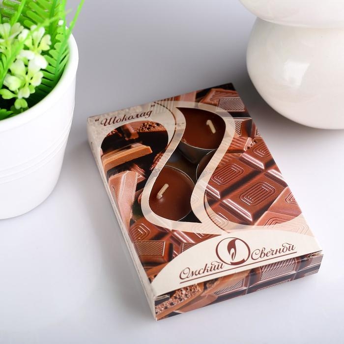 Набор чайных свечей ароматических "Шоколад", 3,8х1,6 см, 3,5 ч, 12 г, 6 штук