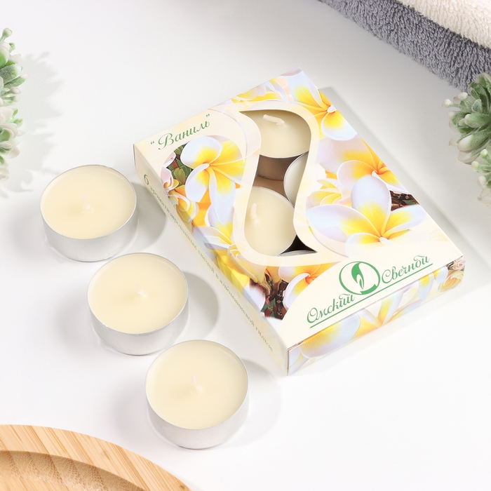 Набор чайных свечей ароматических "Ваниль", 3,8х1,6 см, 3,5 ч, 12 г, 6 штук