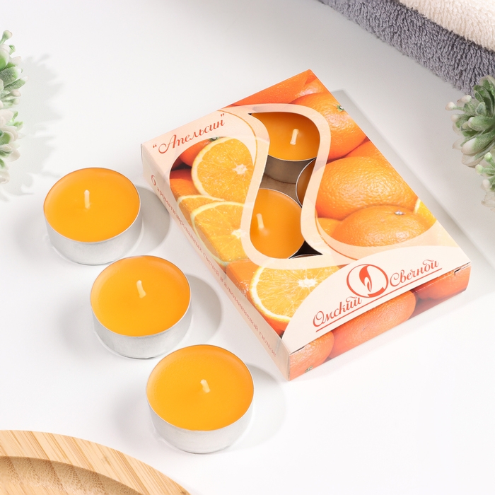 Набор чайных свечей ароматических "Апельсин", 3,8х1,6 см, 3,5 ч, 12 г, 6 штук