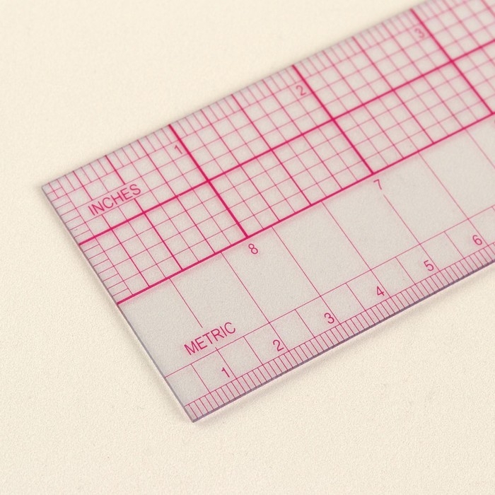 Линейка для квилтинга и пэчворка, 15 × 5 см, цвет прозрачный/розовый