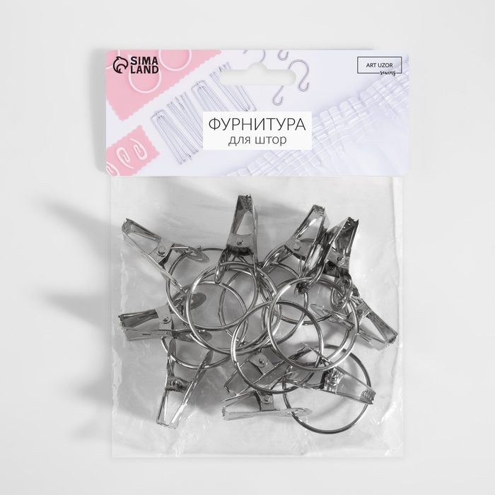 Крючок для штор, 70 × 25 мм, 10 шт, цвет серебряный