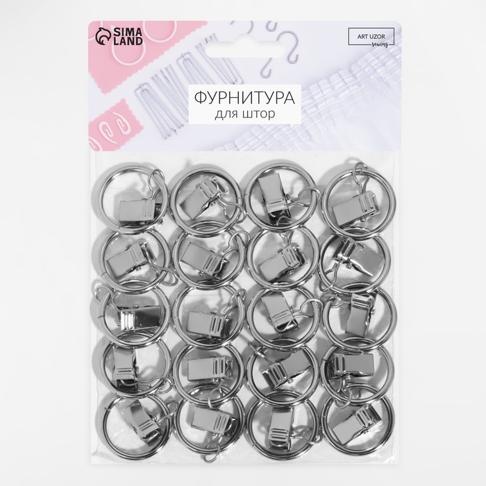 Кольцо для карниза, с зажимом, d = 23/30 мм, 20 шт, цвет серебряный