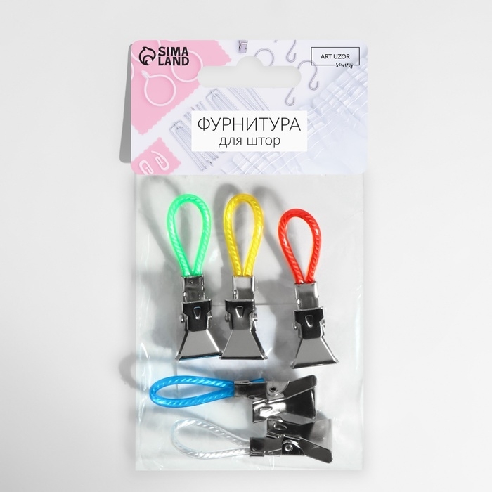 Зажим для штор, на петле, 50 × 15 мм, 5 шт, цвет разноцветный