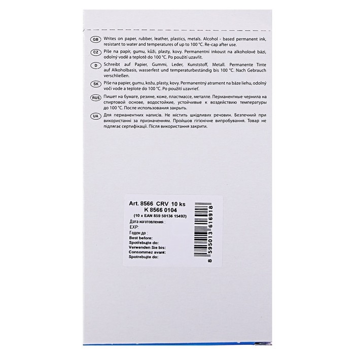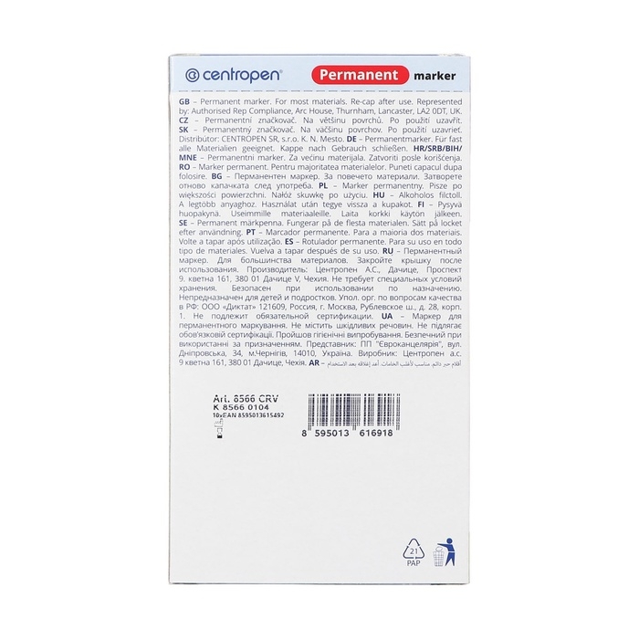 Centropen 8566 — это перманентый маркер, который предназначен для письма на любых поверхностях.