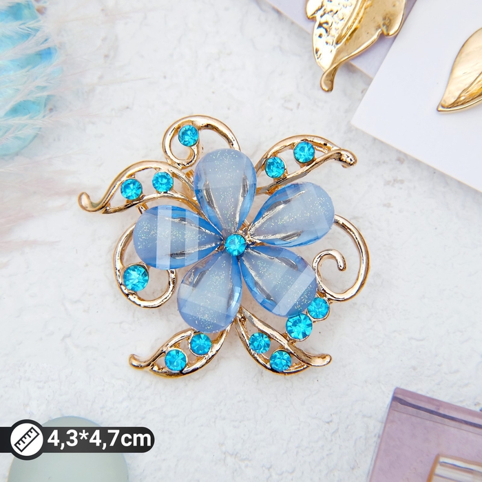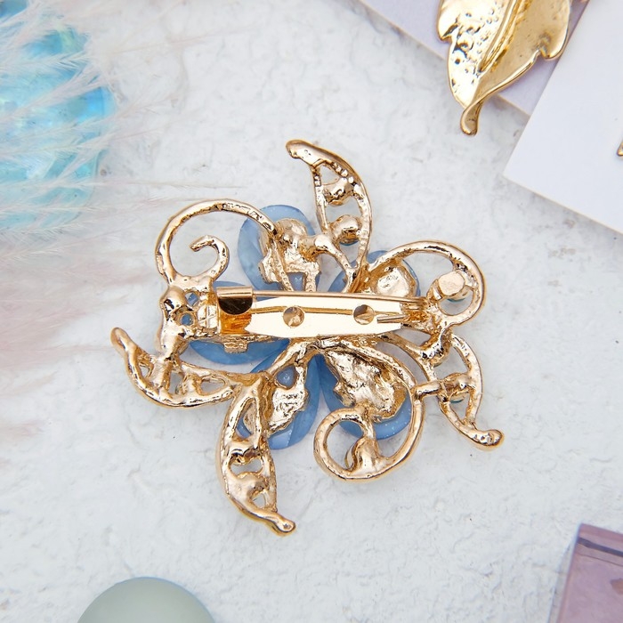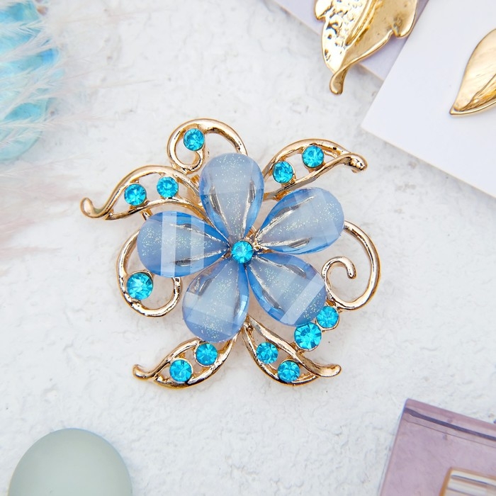 Брошь «Цветок» незабудка, цвет голубой в золоте