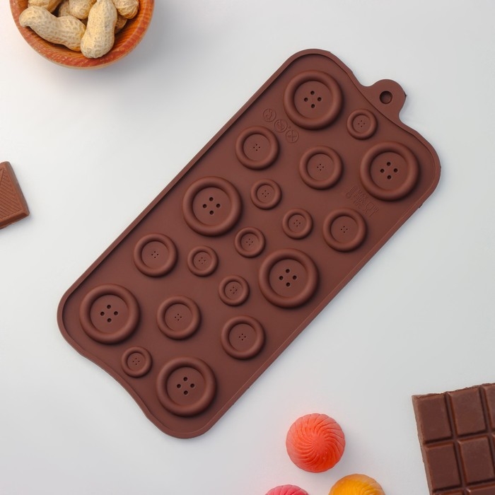 Форма для кондитерских украшений Доляна «Пуговки», силикон, 20,5×10 см, 19 ячеек, цвет коричневый