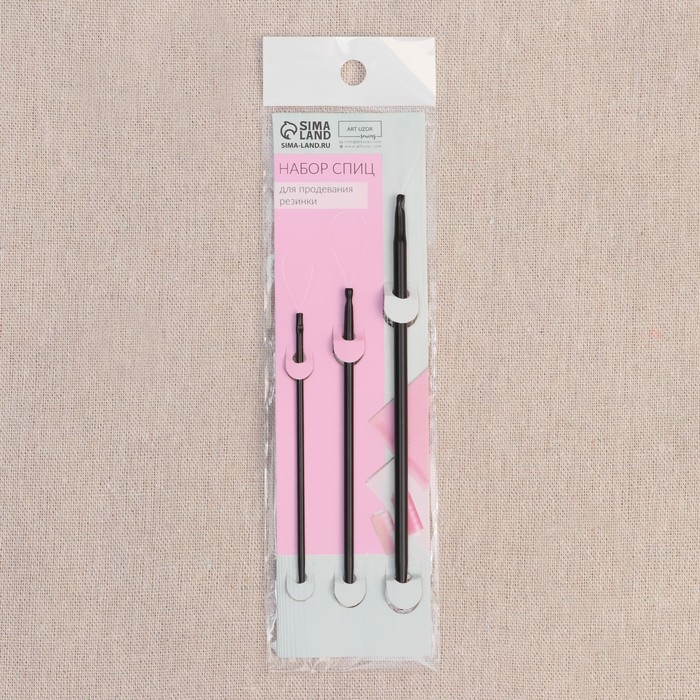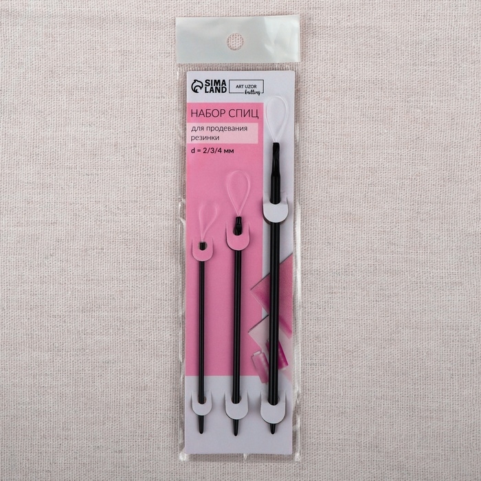 Набор спиц для продевания резинки/тесьмы/шнура, d = 2/3/4 мм, 3 шт, цвет чёрный