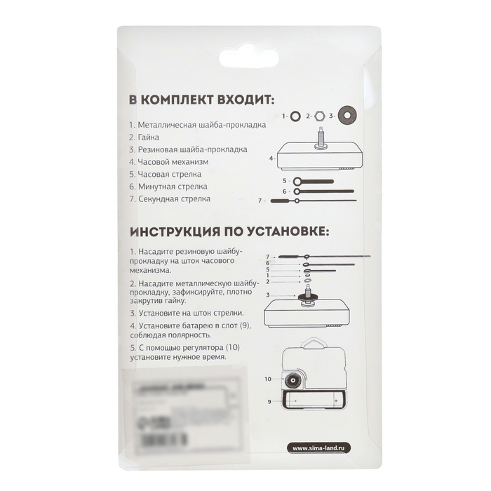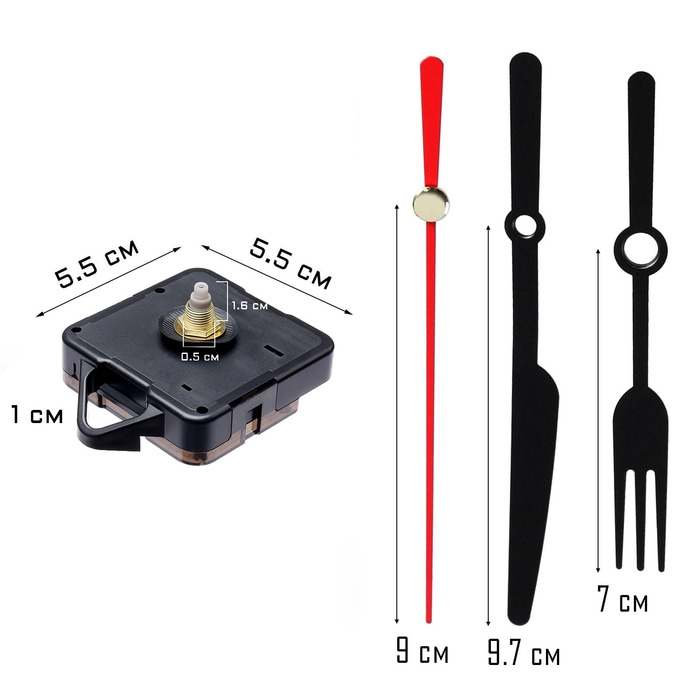 Часовой механизм со стрелками "Соломон-9", плавный ход, шток 16 мм, стрелки 58/72/73 мм