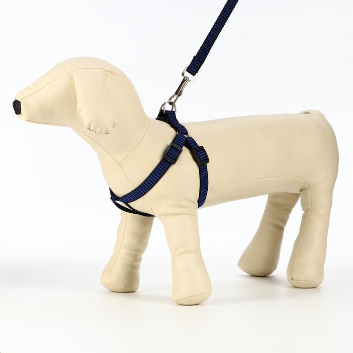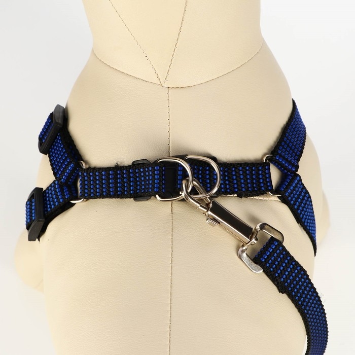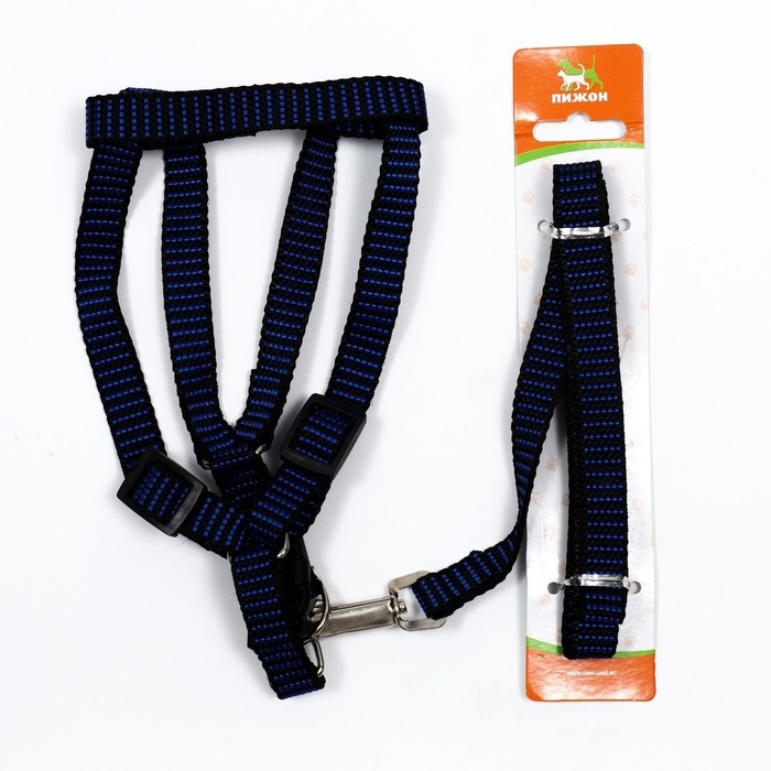 Комплект амуниции с мягкой шлейкой, поводок 120 х 1 см, ОГ 34-58 см, синяя клетка