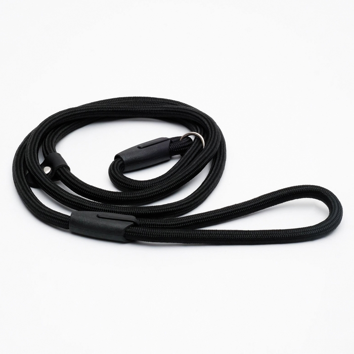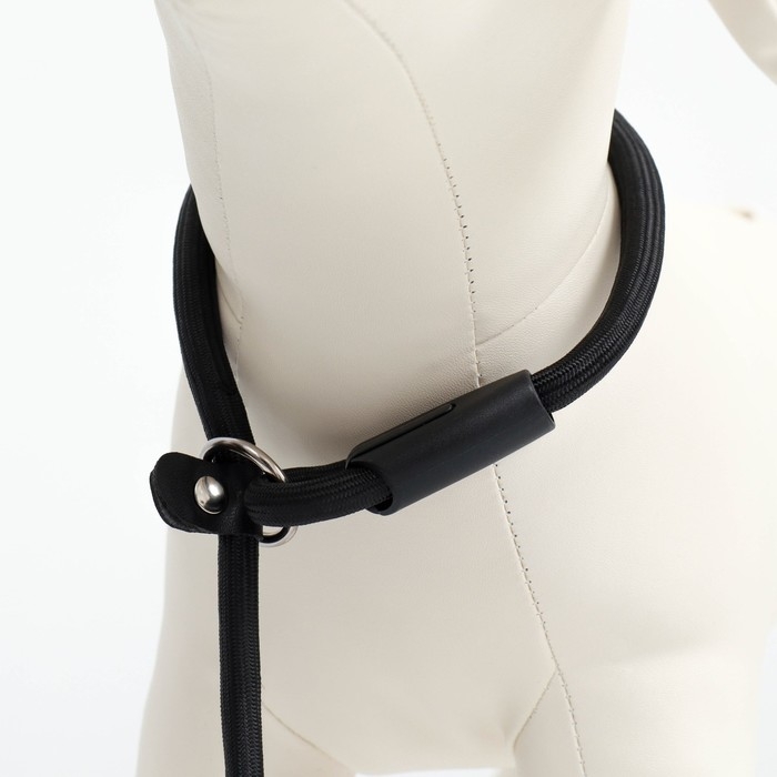 Поводок-удавка 150 х 1 см, полиэстер и натуральная кожа, чёрный