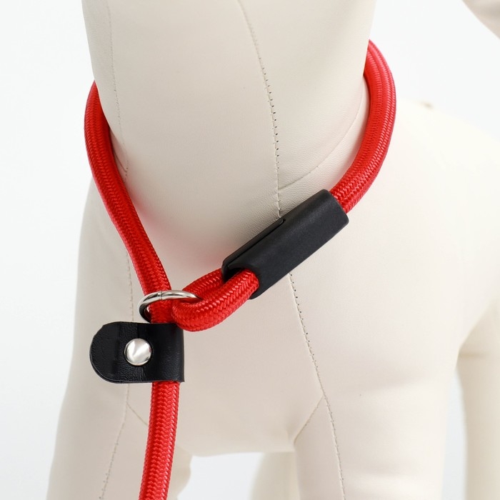Поводок-удавка 150 х 1 см, полиэстер и натуральная кожа, чёрный