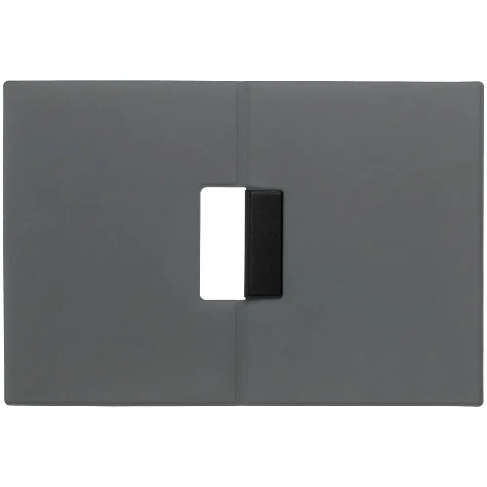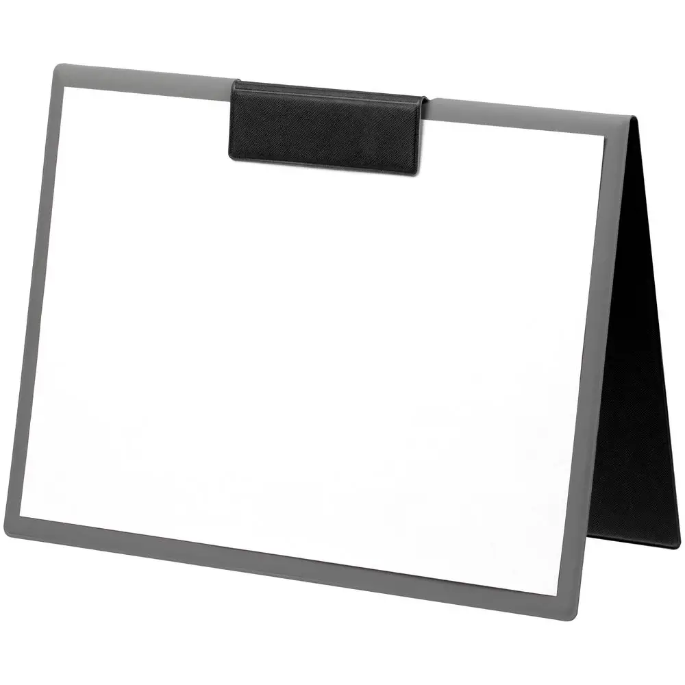 Папку можно использовать в стандартном вертикальном формате или перегнуть обложку и поставить в качестве таблички горизонтально. Магнитный клип удерживает до 10 листов.