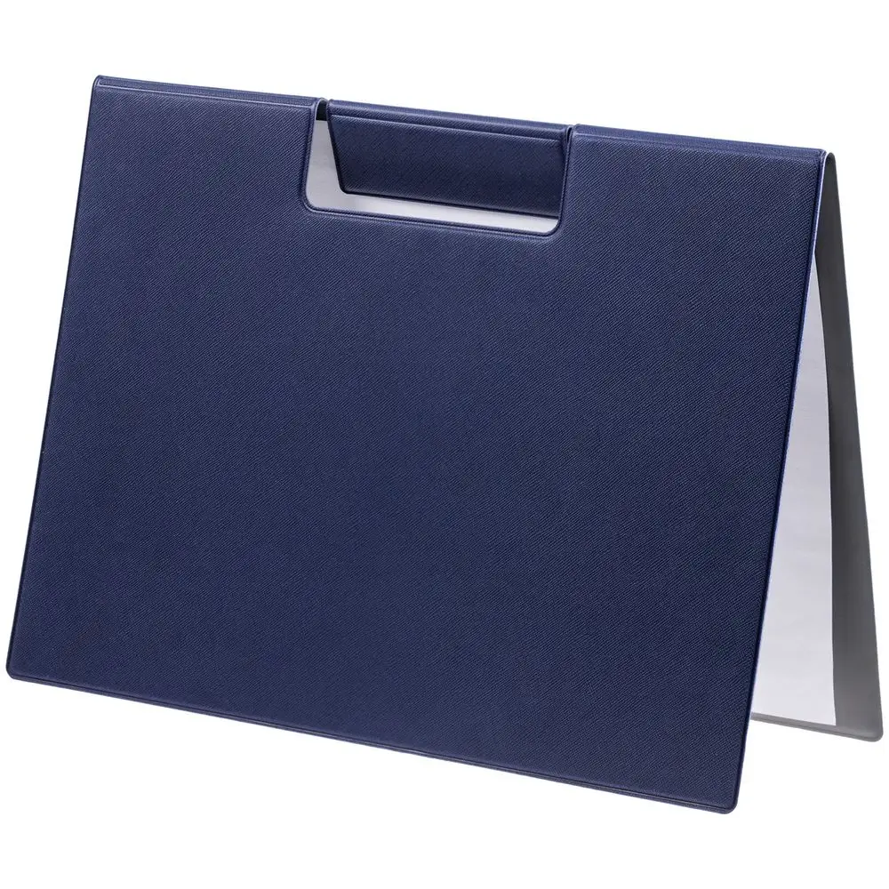 Папку можно использовать в стандартном вертикальном формате или перегнуть обложку и поставить в качестве таблички горизонтально. Магнитный клип удерживает до 10 листов.