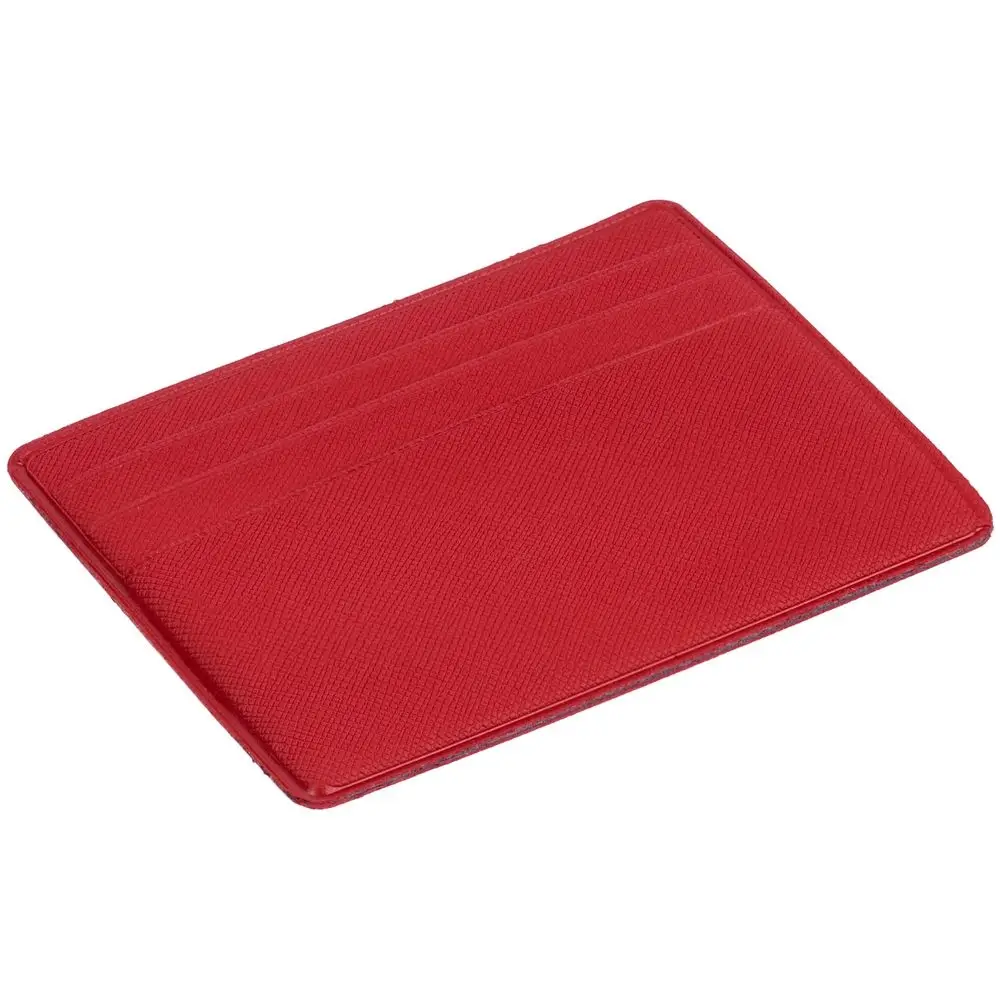 Чехол для карточек из искусственного материала, имитирующего сафьяновую кожу, с шестью отделениями для кредитных карт и одним — для сложенных купюр.