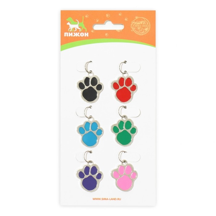 Адресник под гравировку "Лапа", фасовка по 6 шт, 2,6 х 3,2 см, микс цветов