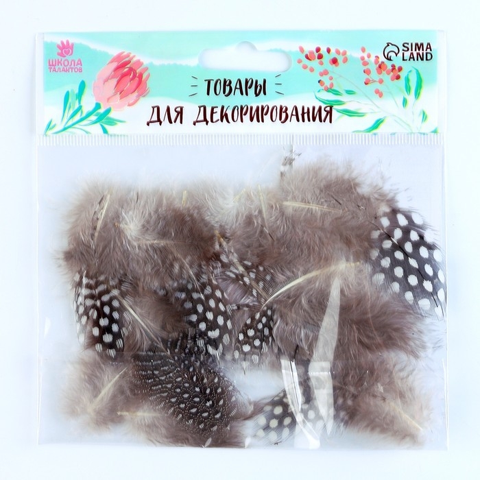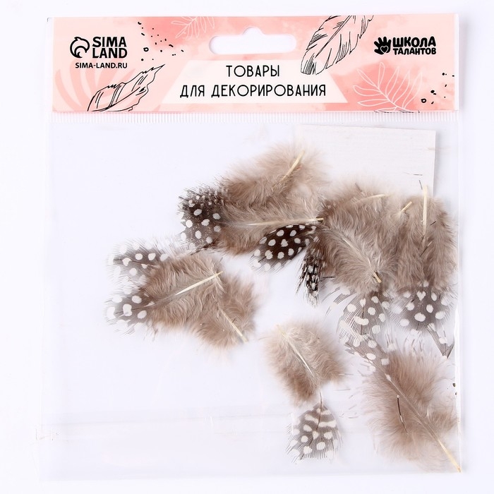 Набор перьев для декора 10 шт., размер 1 шт: 5 × 2 см, цвет коричневый с белым