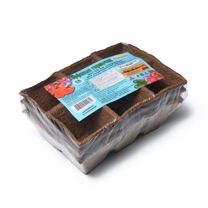 Кассета для рассады, 28 × 20 × 9 см, 6 ячеек по 400 мл, торф, 9 × 9 см