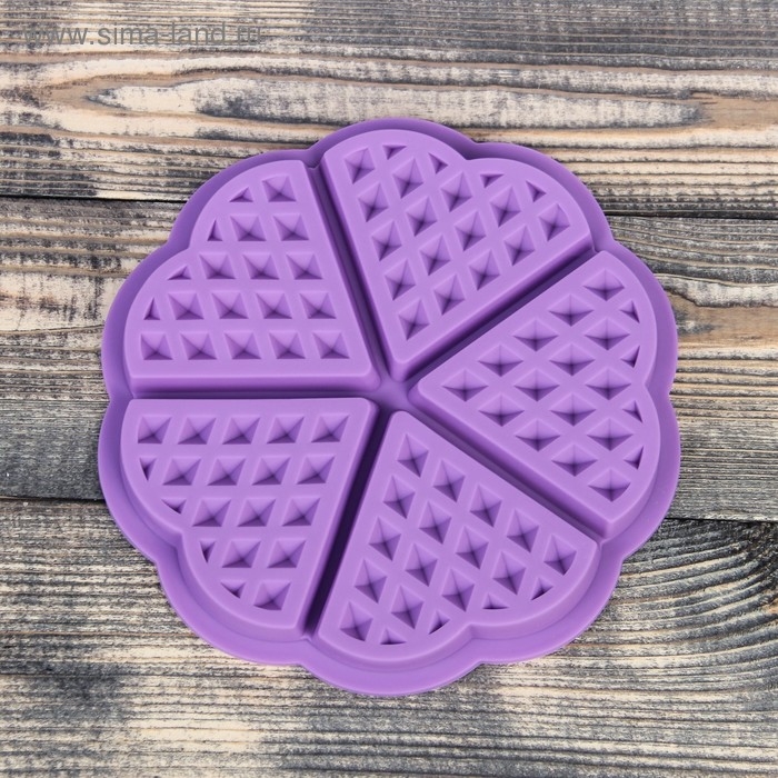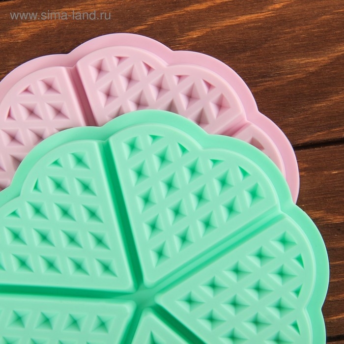 Форма для выпечки Доляна «Вафля. Сердце», силикон, d=18 см, 5 ячеек, цвет МИКС