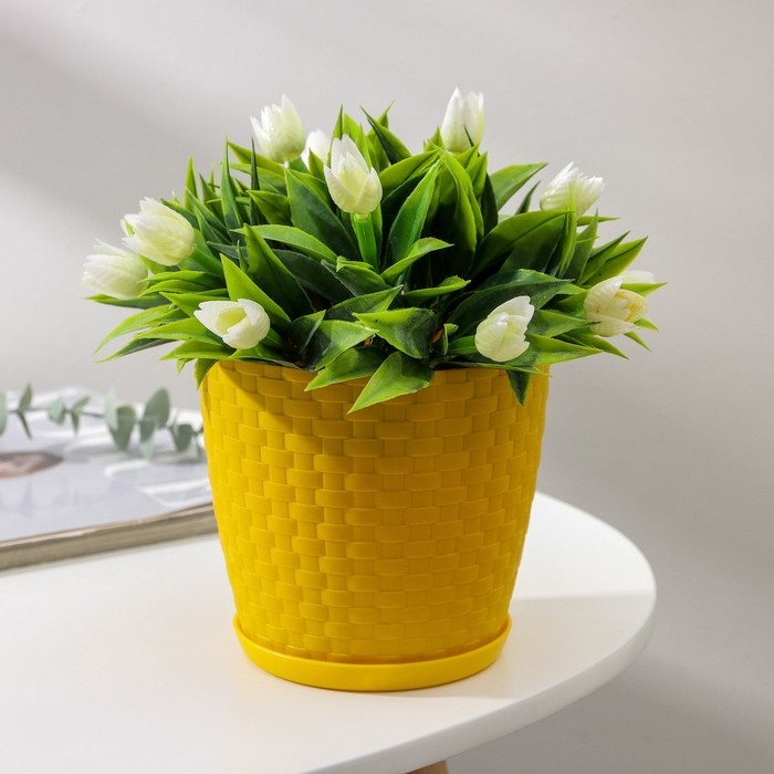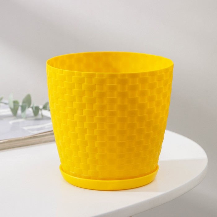 Горшок для цветов с поддоном «Ротанг», 1,2 л, цвет жёлтый