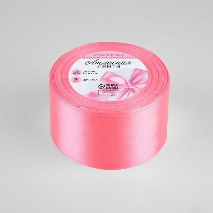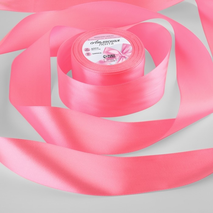Лента атласная, 50 мм × 23 ± 1 м, цвет насыщенный розовый №05
