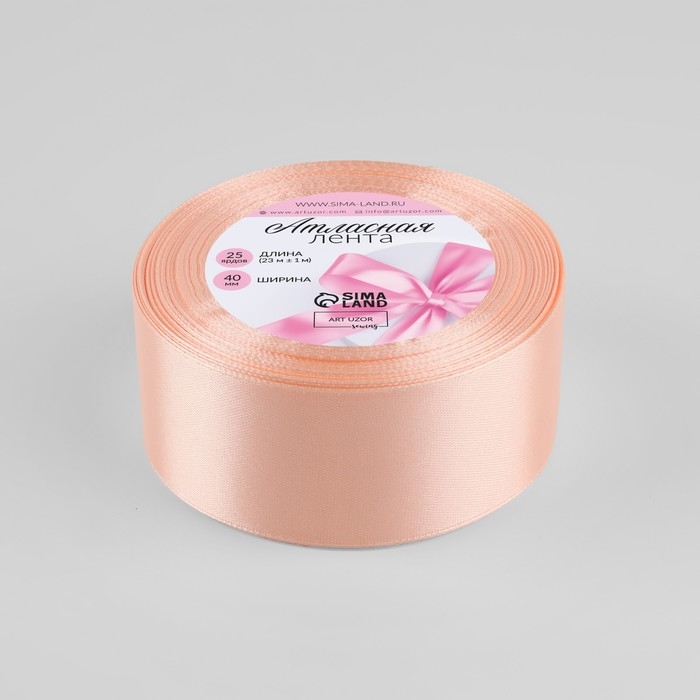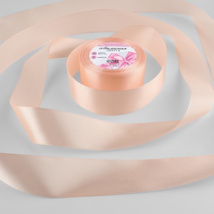 Лента атласная, 40 мм × 23 ± 1 м, цвет нежно-персиковый №07