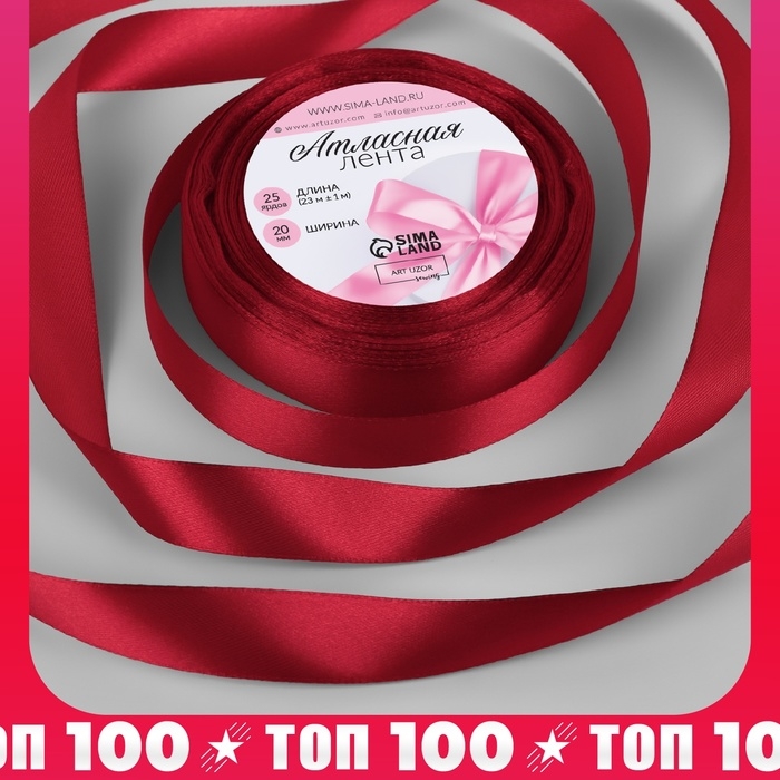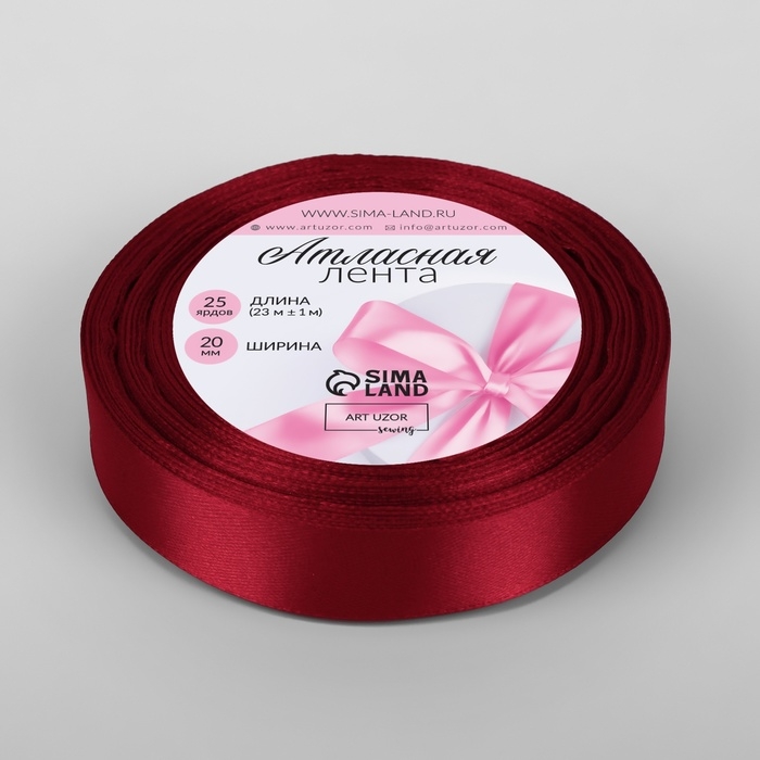 Лента атласная, 20 мм × 23 ± 1 м, цвет глубокий красный №33