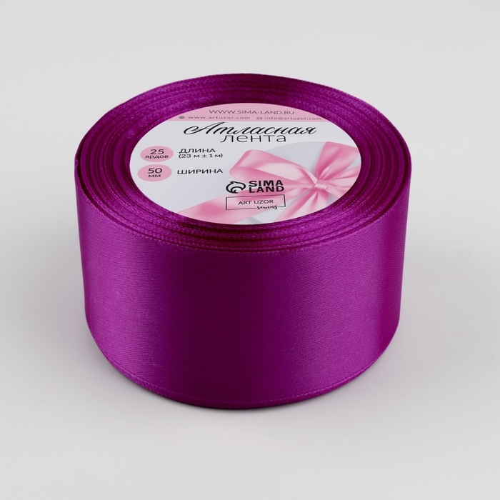 Лента атласная, 50 мм × 23 ± 1 м, цвет пурпурный №29