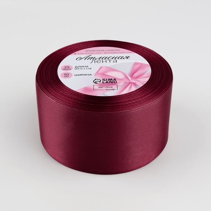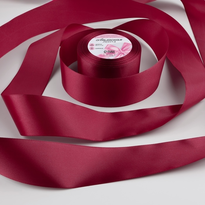 Лента атласная, 50 мм × 23 ± 1 м, цвет малиново-красный №134