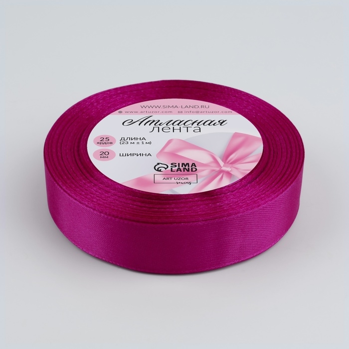 Лента атласная, 20 мм × 23 ± 1 м, цвет холодный малиновый №95