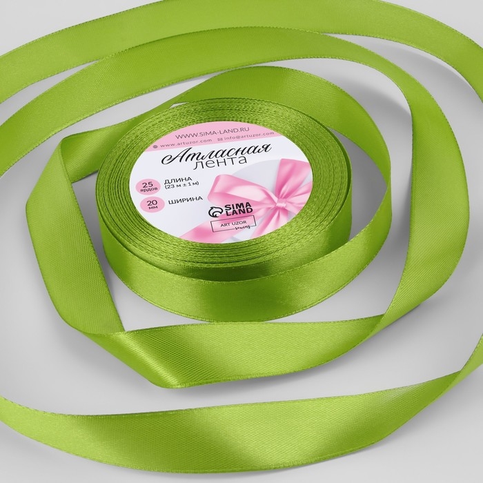 Лента атласная, 20 мм × 23 ± 1 м, цвет светло-оливковый №184