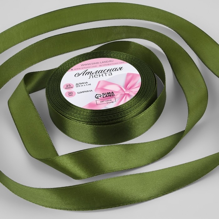 Лента атласная, 20 мм × 23 ± 1 м, цвет травяной №113