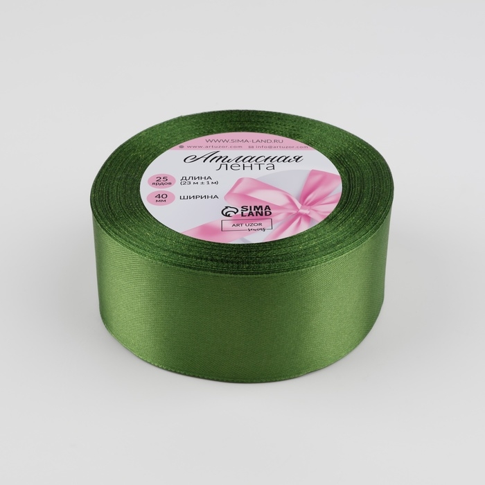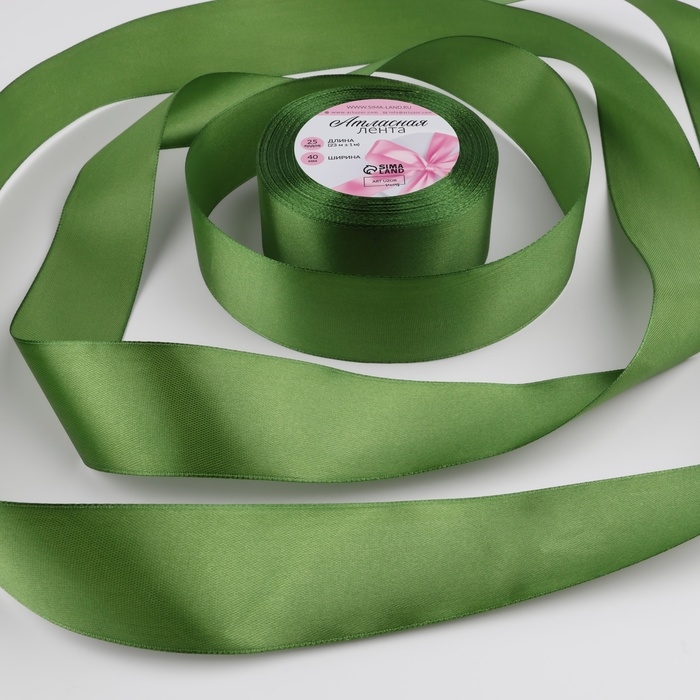 Лента атласная, 40 мм × 23 ± 1 м, цвет травяной №113