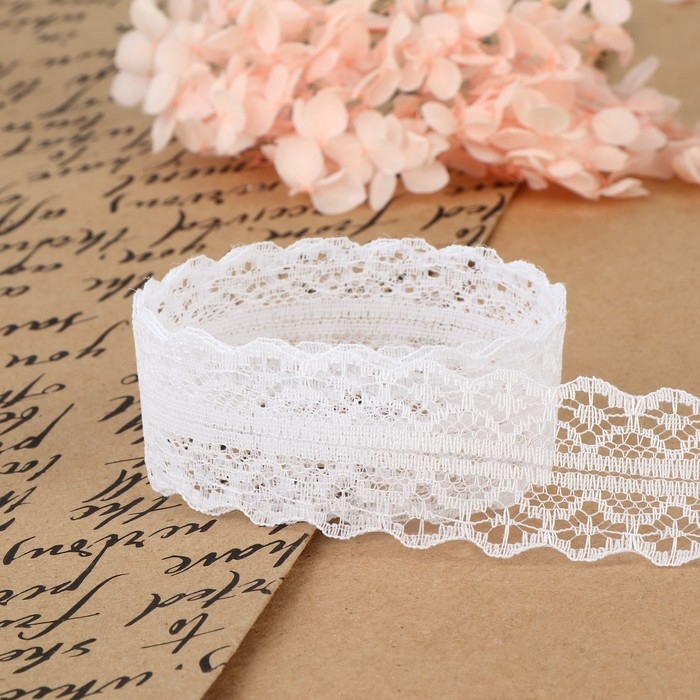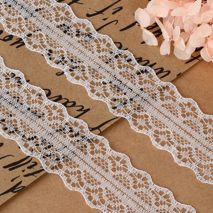 Кружево капроновое, 30 мм × 10 ± 1 м, цвет белый