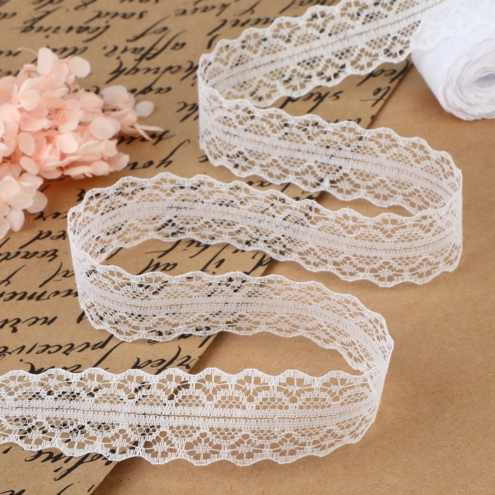 Кружево гипюровое, 15 мм × 14 ± 1 м, цвет белый