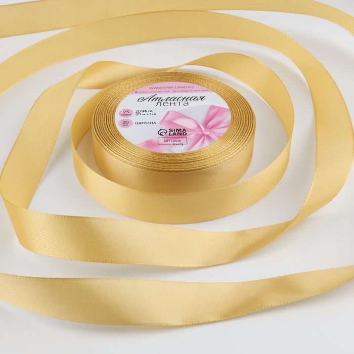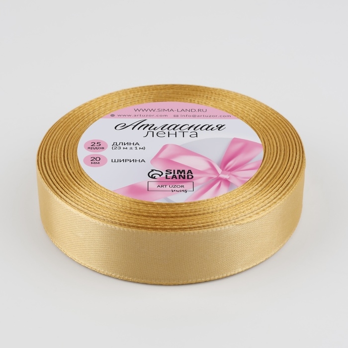 Лента атласная, 20 мм × 23 ± 1 м, цвет золотисто-бежевый №186