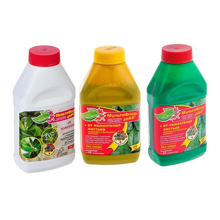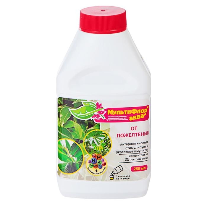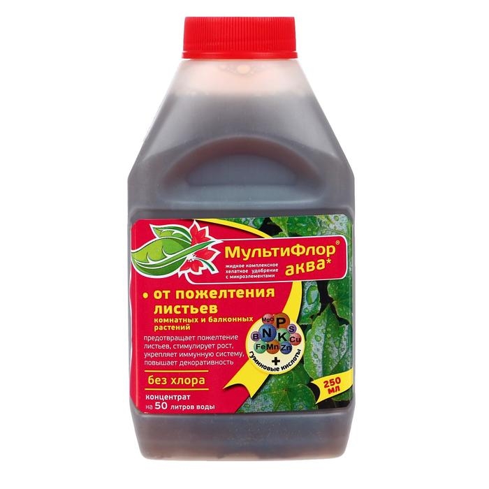 Удобрение Мультифлор Аква от пожелтения листьев, комнатных и балконных, 250 мл