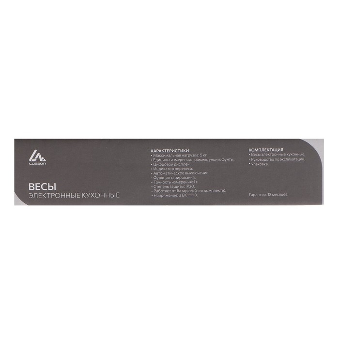 Весы кухонные Luazon LVK-501, электронные, до 5 кг, белые