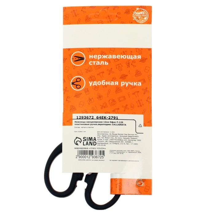 Ножницы канцелярские 11,7см Офис пластиковые ручки, европодвес
