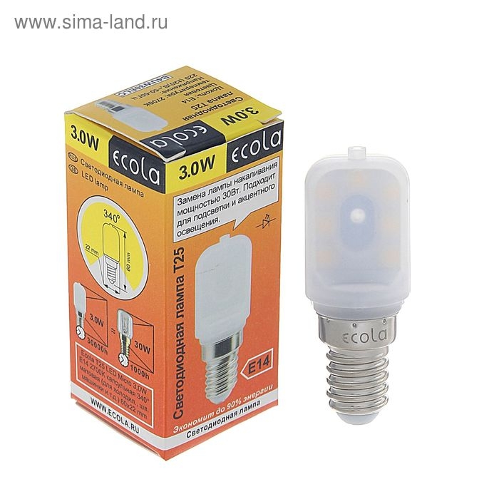 Лампа светодиодная Ecola, T25, 3 Вт, 2700 К, 340°, для холодильников и швейных машин