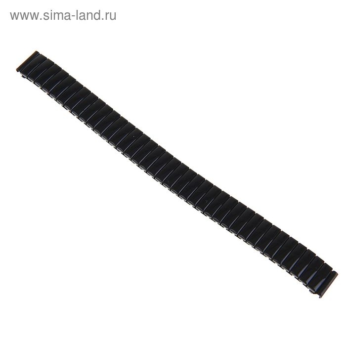 Ремешок для часов 12 мм, металл, звенья объёмные, чёрный хром, 15.5 см