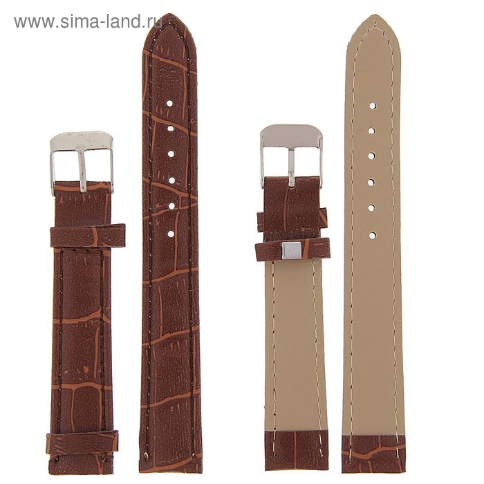 Ремешок для часов "Соломон", 16 мм, экокожа, l-19 см, коричневый